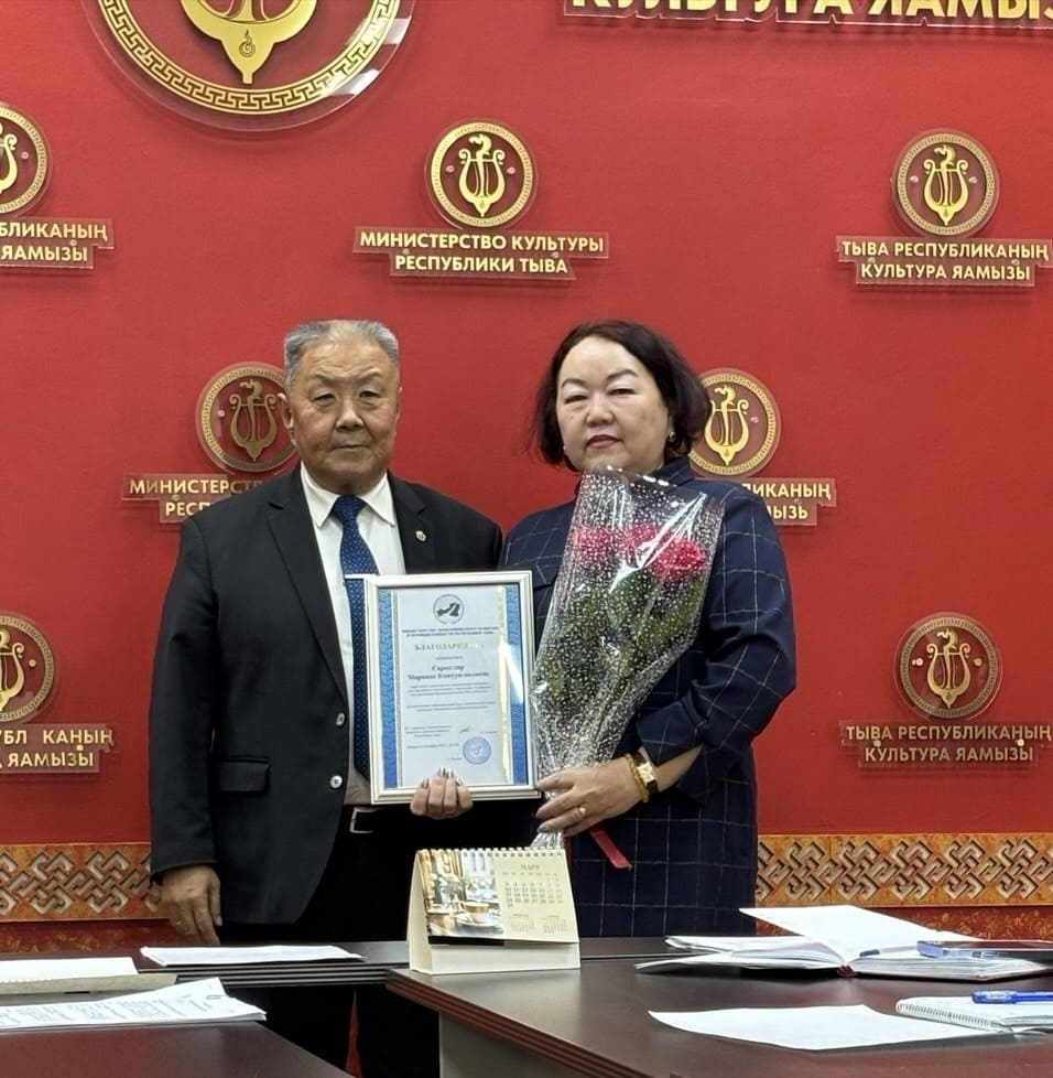 • Сегодня, в честь Дня экономиста, который отмечался недавно, министр культуры Тувы Виктор Чигжит поздравил представителей экономического блока отрасли культуры и вручил государственные и ведомственные награды. Среди награжденных — Мариана Кожуун-ооловна Сарыглар, заместитель директора по экономическим вопросам Тувгосфилармонии им. В. М. Халилова.